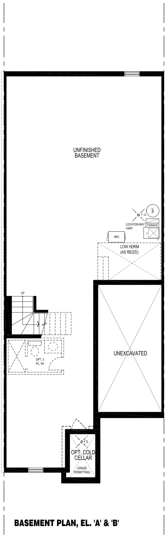 The optional finished basement plan allows for a fourth bedroom and bathroom, and a home office.